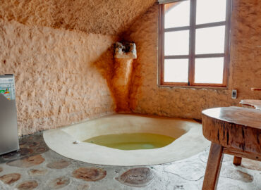Kulli es refugio profundo: el carbón simboliza transformación, limpieza y renacimiento. Aquí todo te invita a bajar el ritmo, respirar y dejar que el silencio haga su trabajo. Su piscina climatizada completa la experiencia, en una caverna creada para honrar la esencia Quimbaya: tierra, fuego interior y renovación.