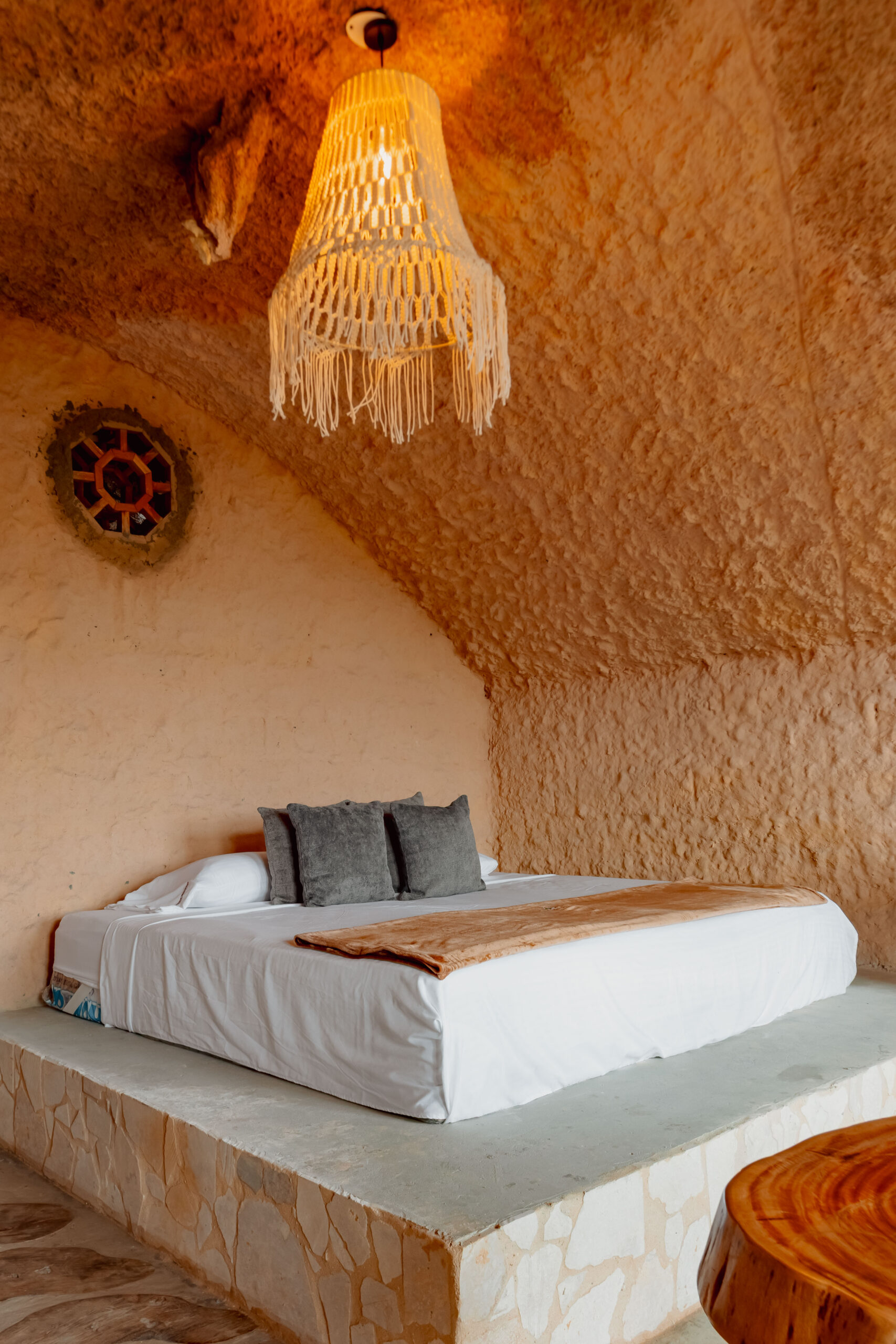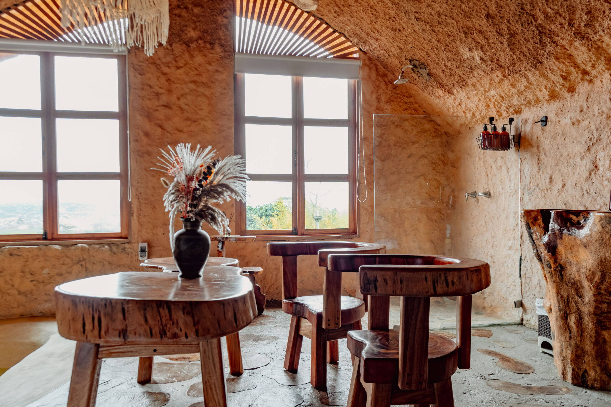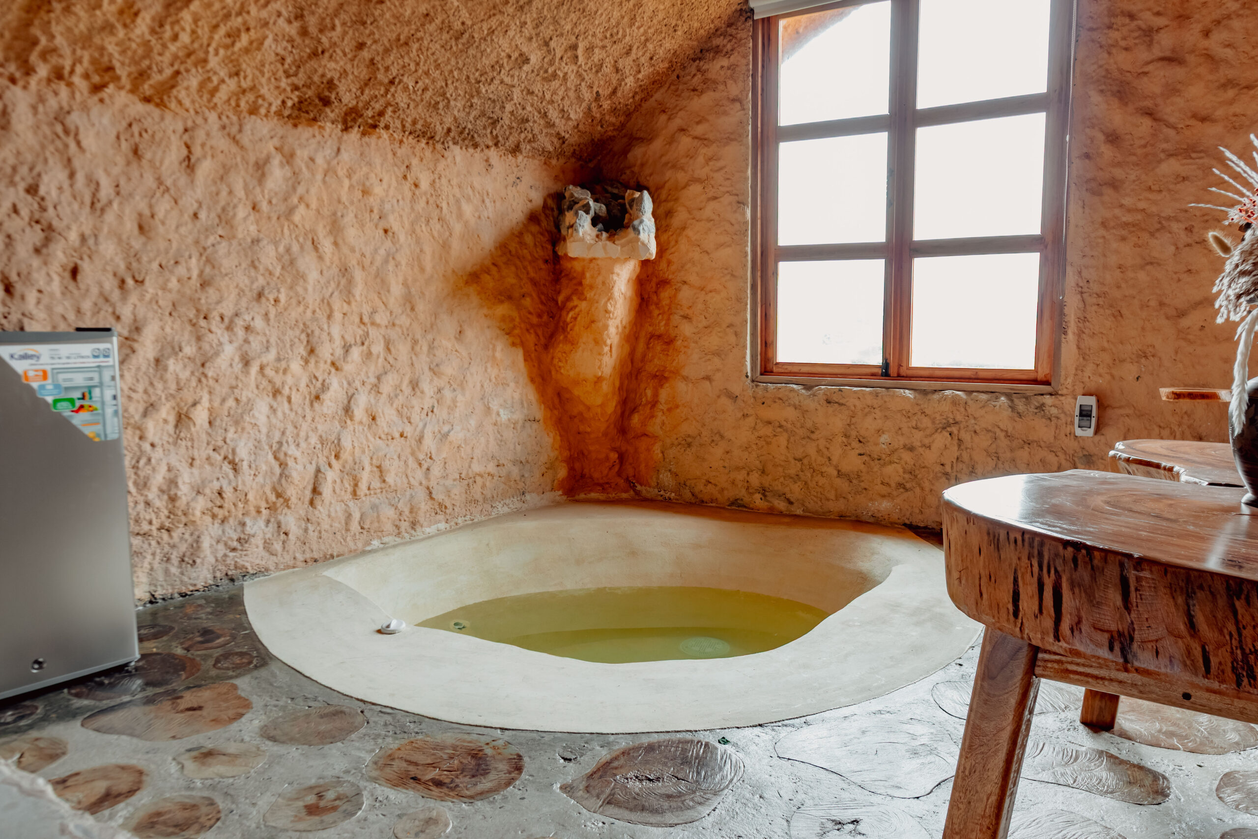Kulli es refugio profundo: el carbón simboliza transformación, limpieza y renacimiento. Aquí todo te invita a bajar el ritmo, respirar y dejar que el silencio haga su trabajo. Su piscina climatizada completa la experiencia, en una caverna creada para honrar la esencia Quimbaya: tierra, fuego interior y renovación.
