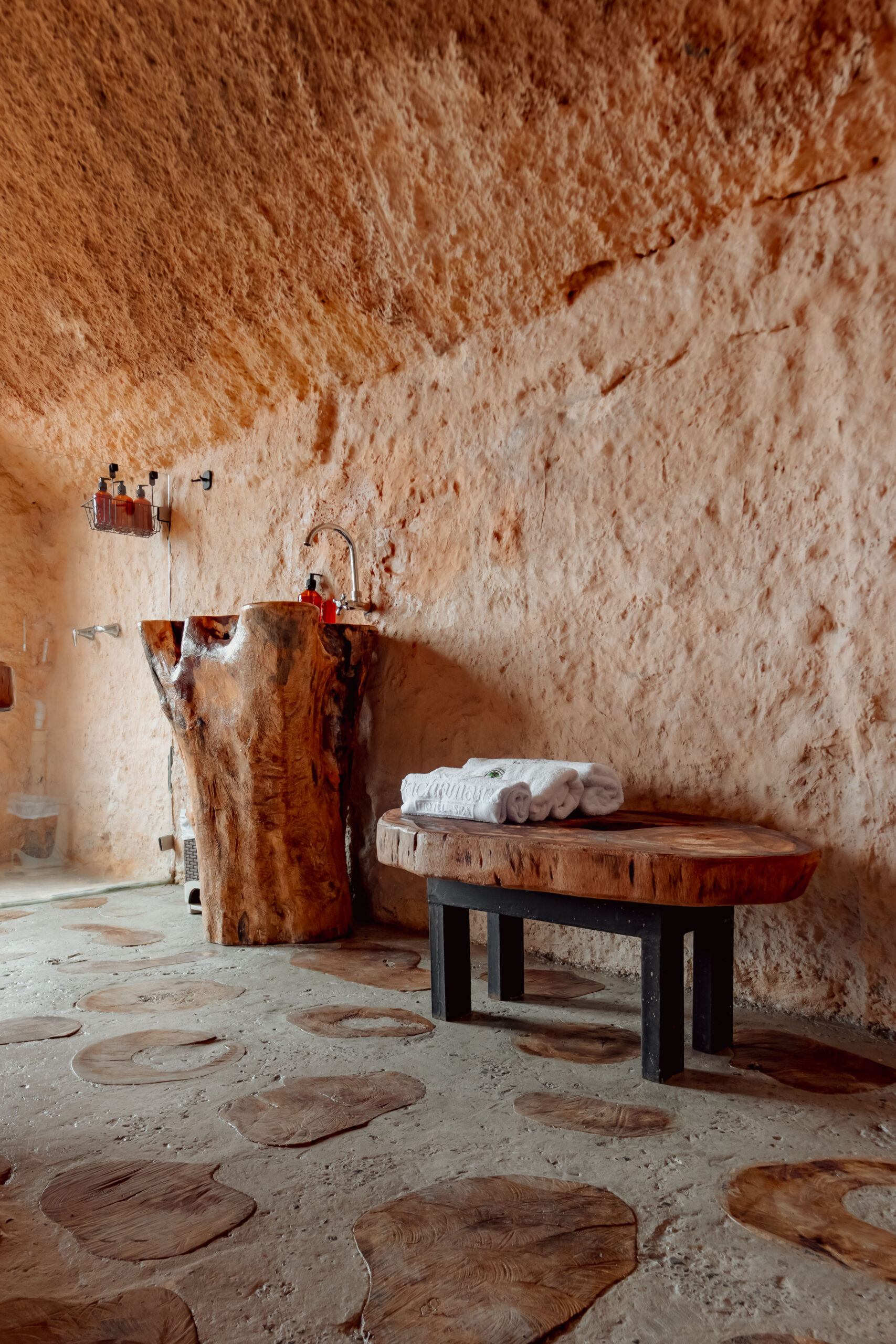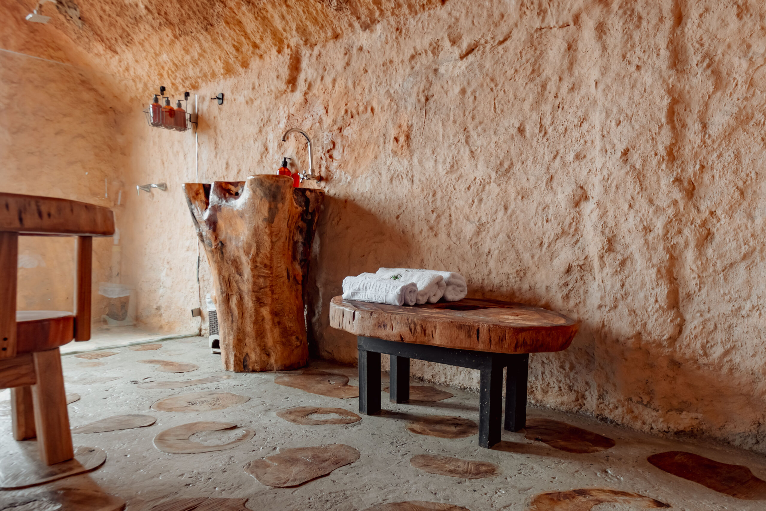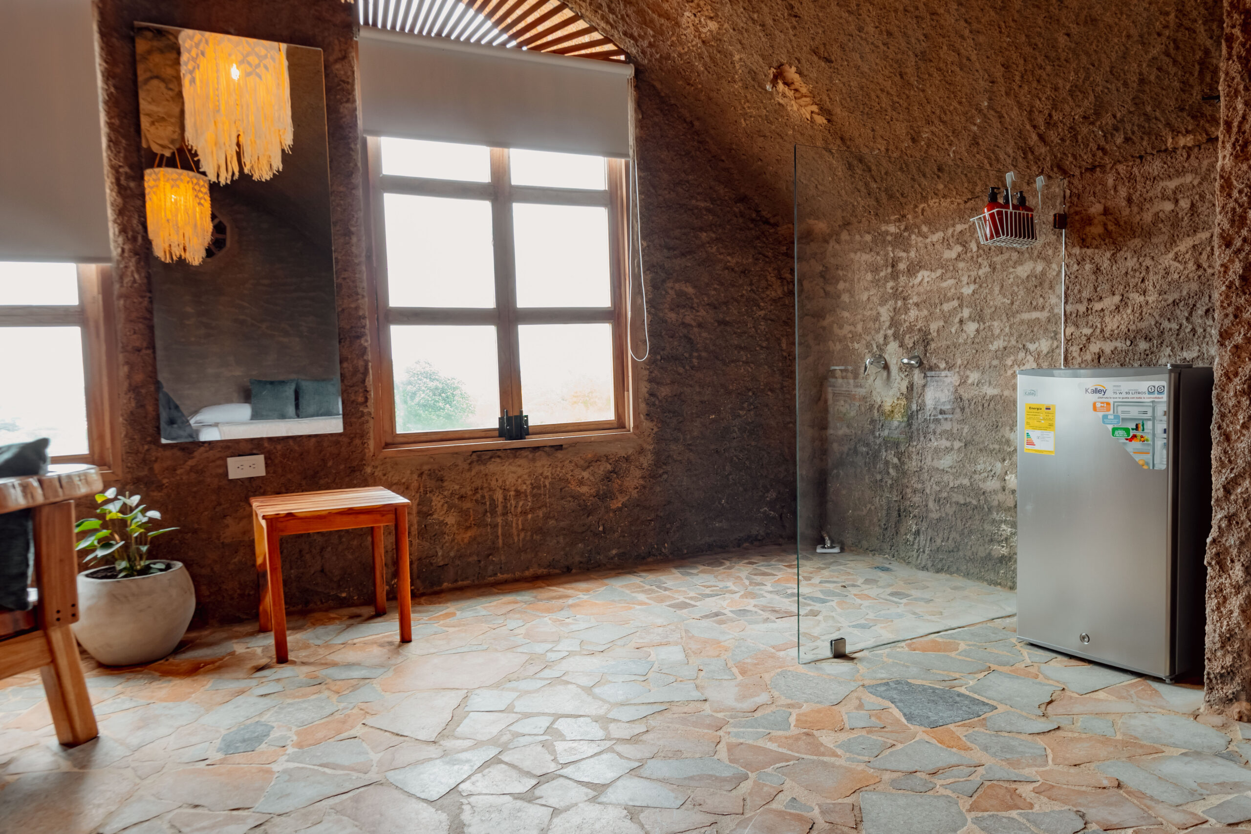 Kulli es refugio profundo: el carbón simboliza transformación, limpieza y renacimiento. Aquí todo te invita a bajar el ritmo, respirar y dejar que el silencio haga su trabajo. Su piscina climatizada completa la experiencia, en una caverna creada para honrar la esencia Quimbaya: tierra, fuego interior y renovación.