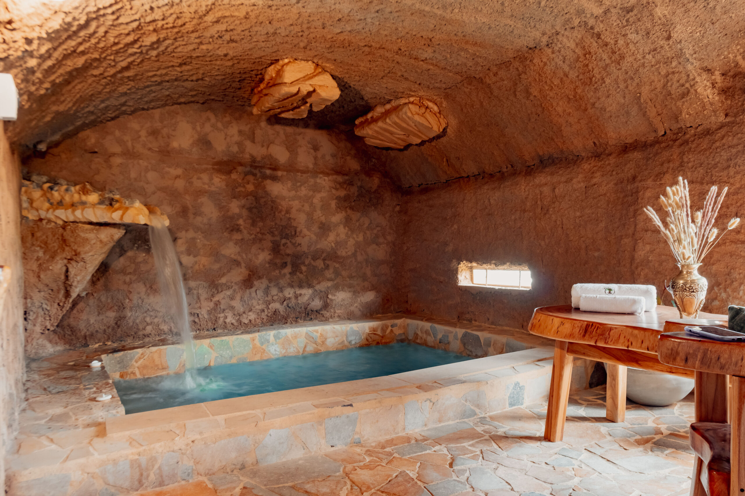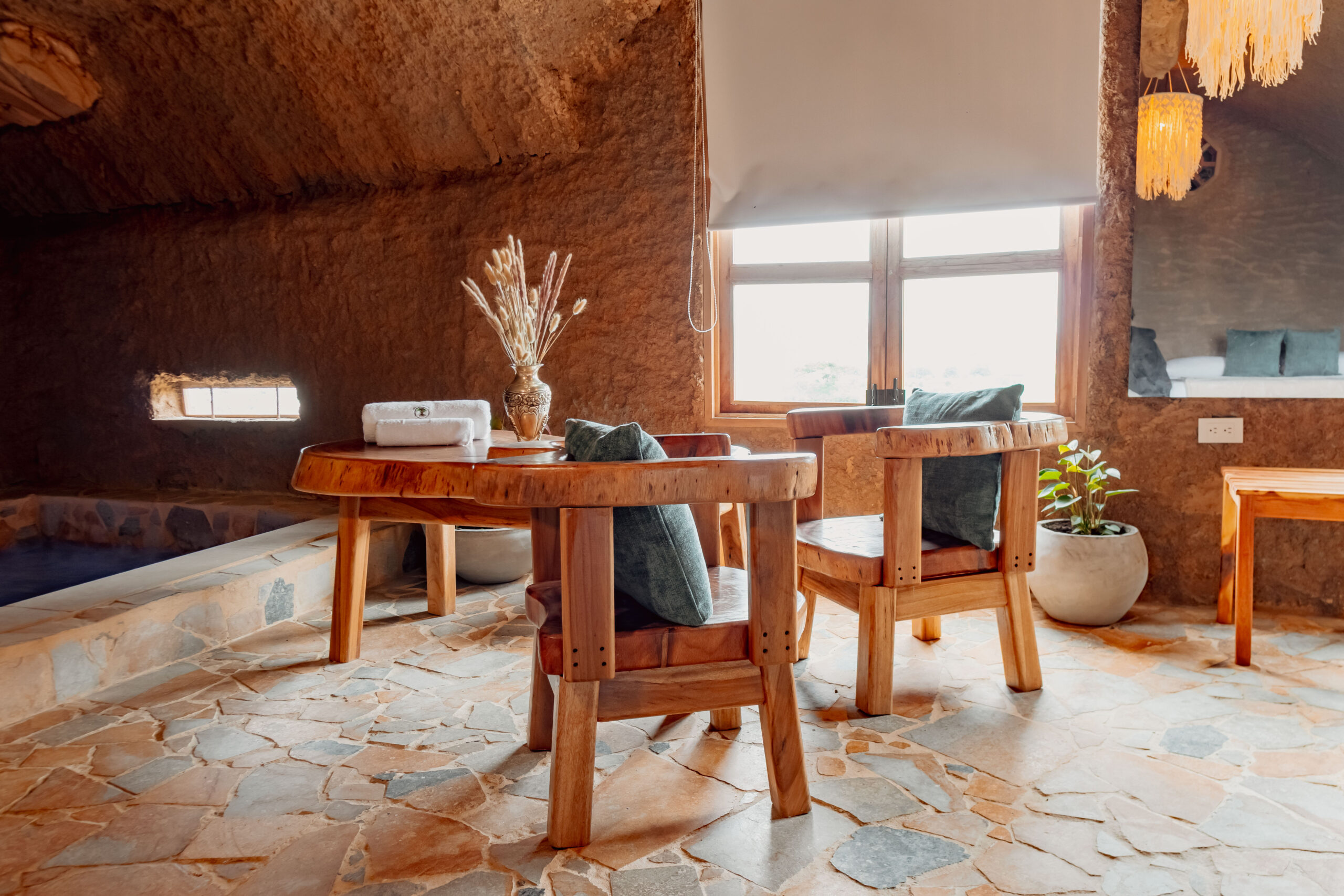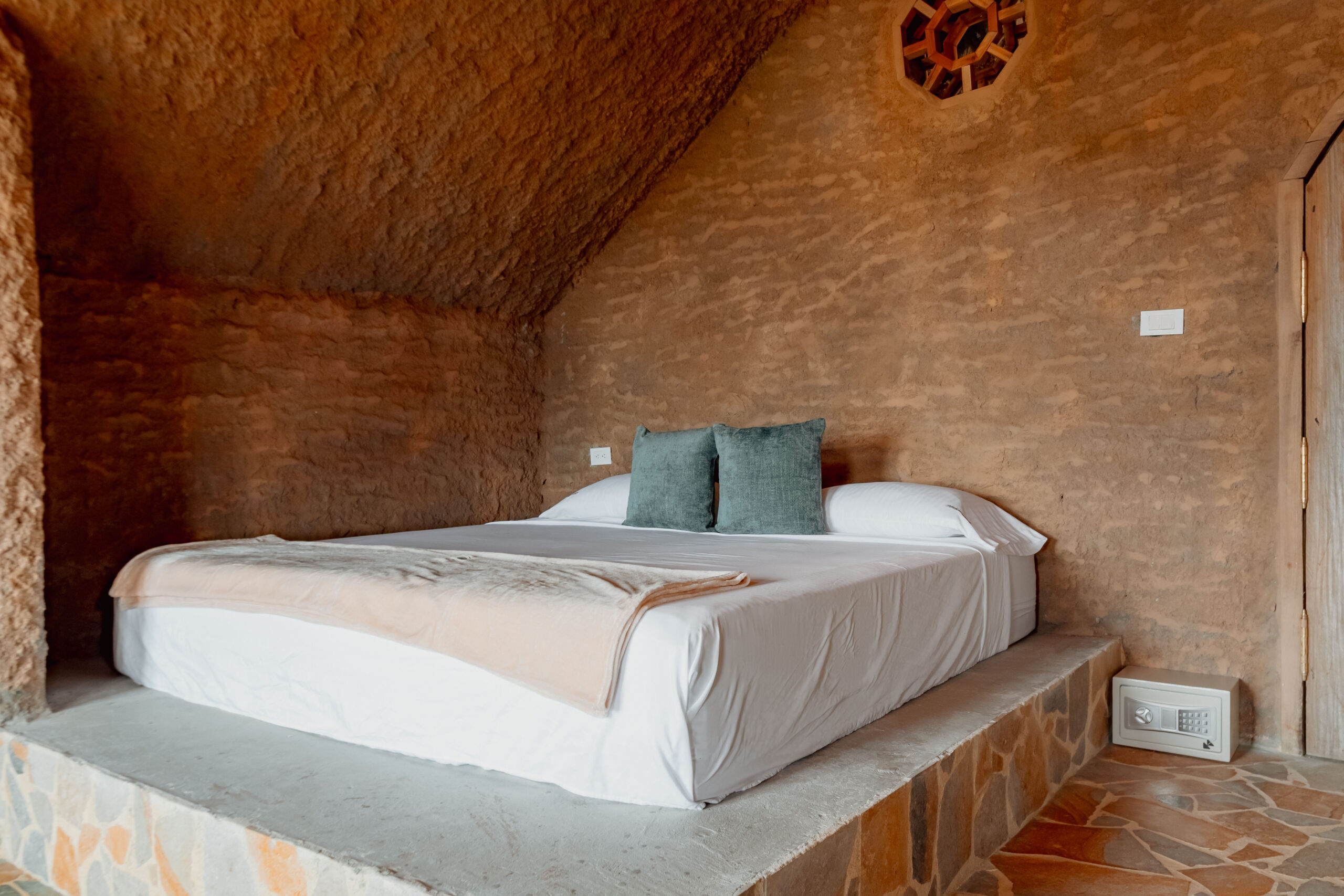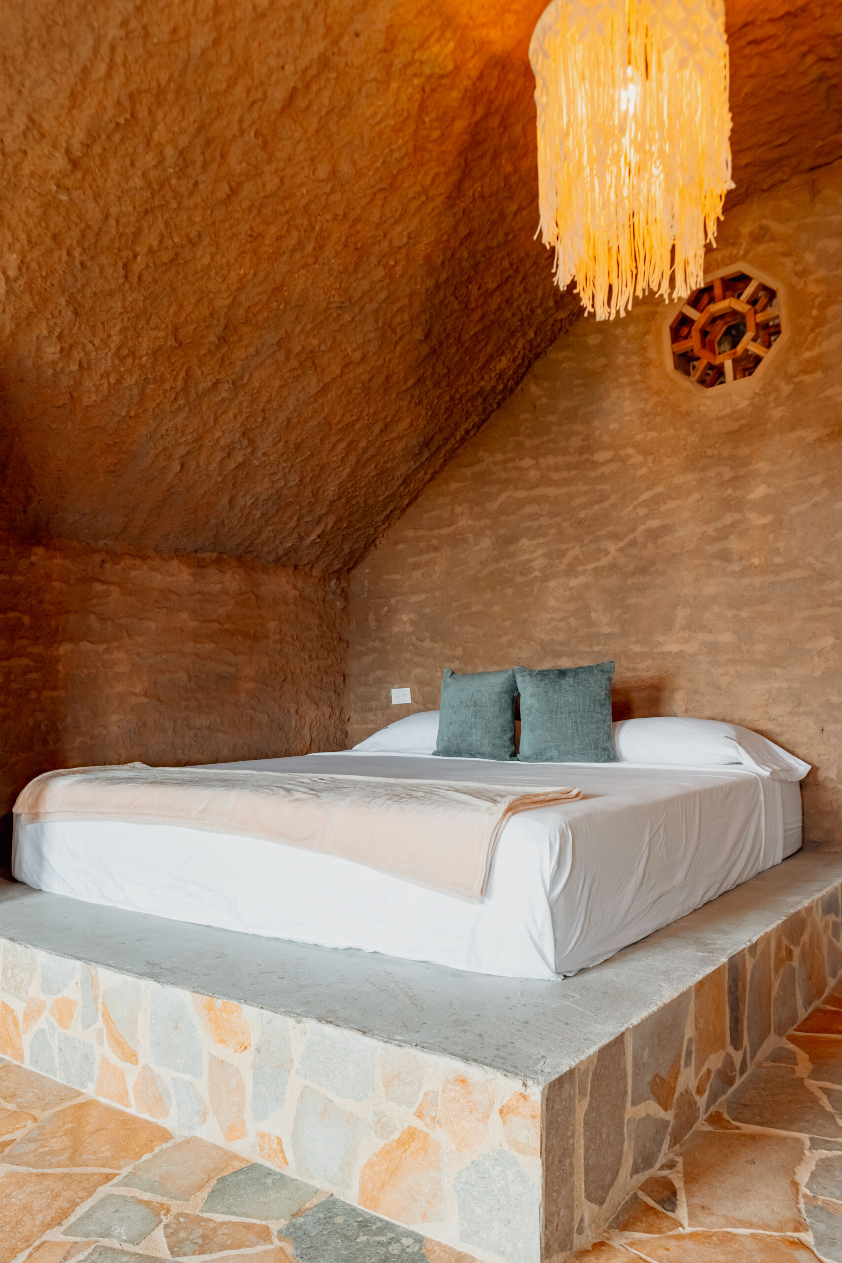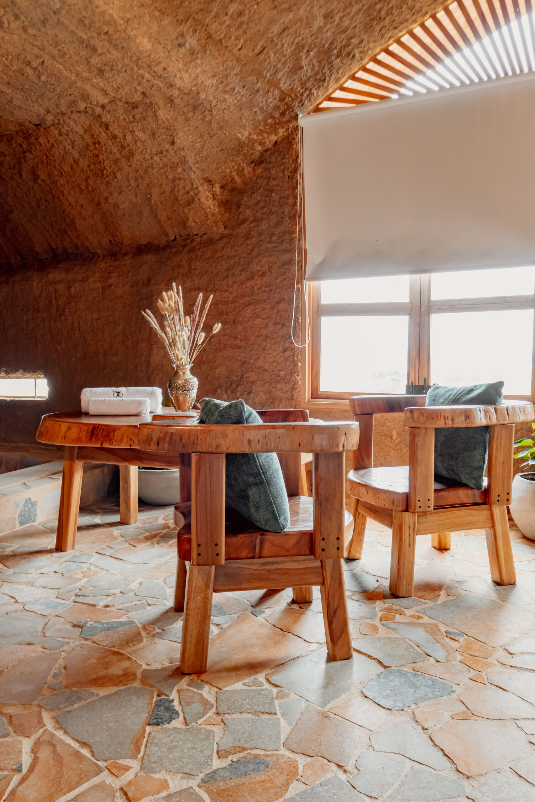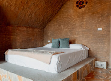 Guacata es una caverna pensada para quienes buscan renovación: la esmeralda simboliza vida, abundancia y equilibrio. Descansa en un ambiente cálido y sensorial con piscina climatizada, diseñado bajo el espíritu Quimbaya para convertir la estadía en un ritual de reconexión