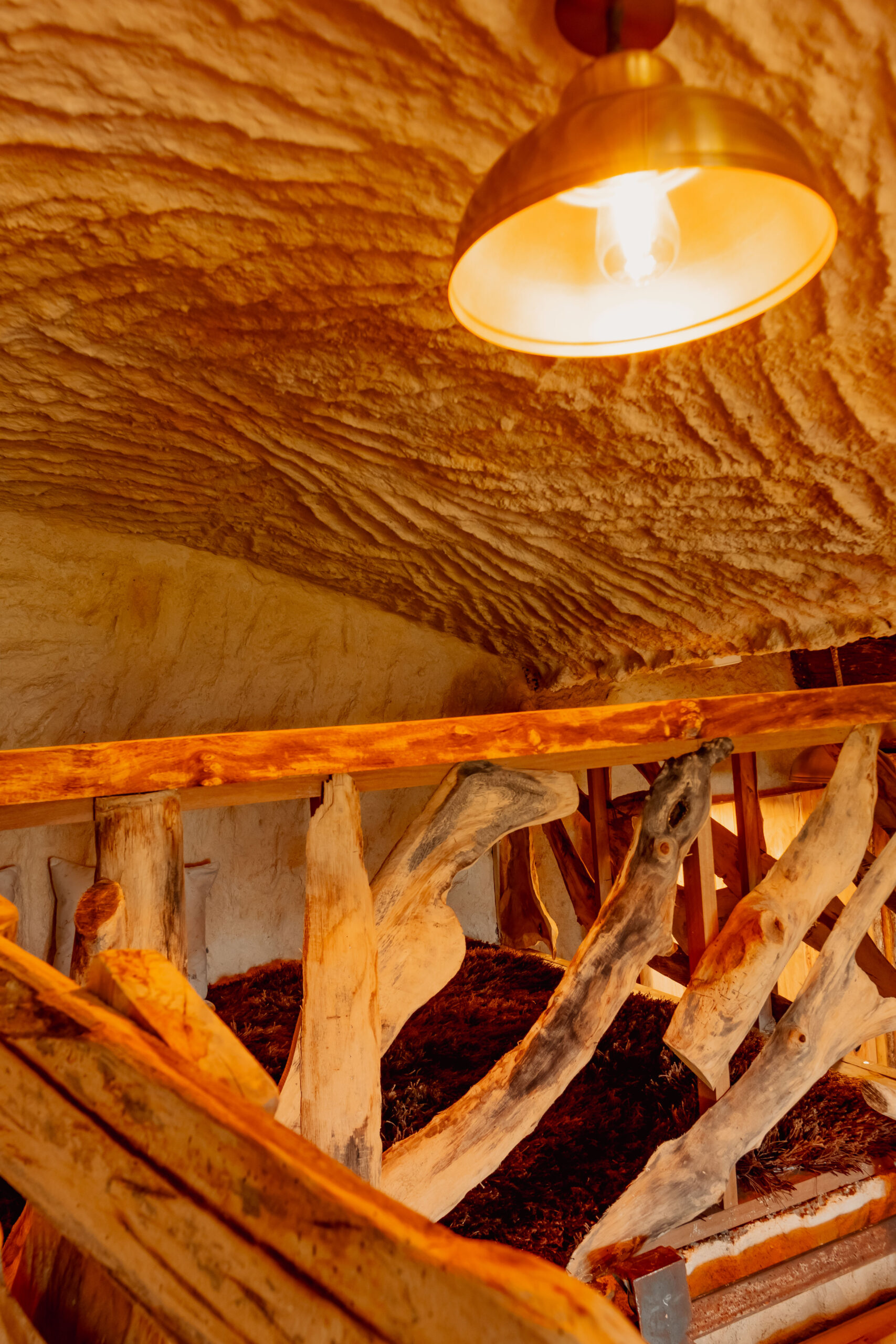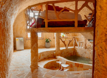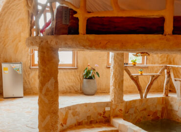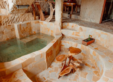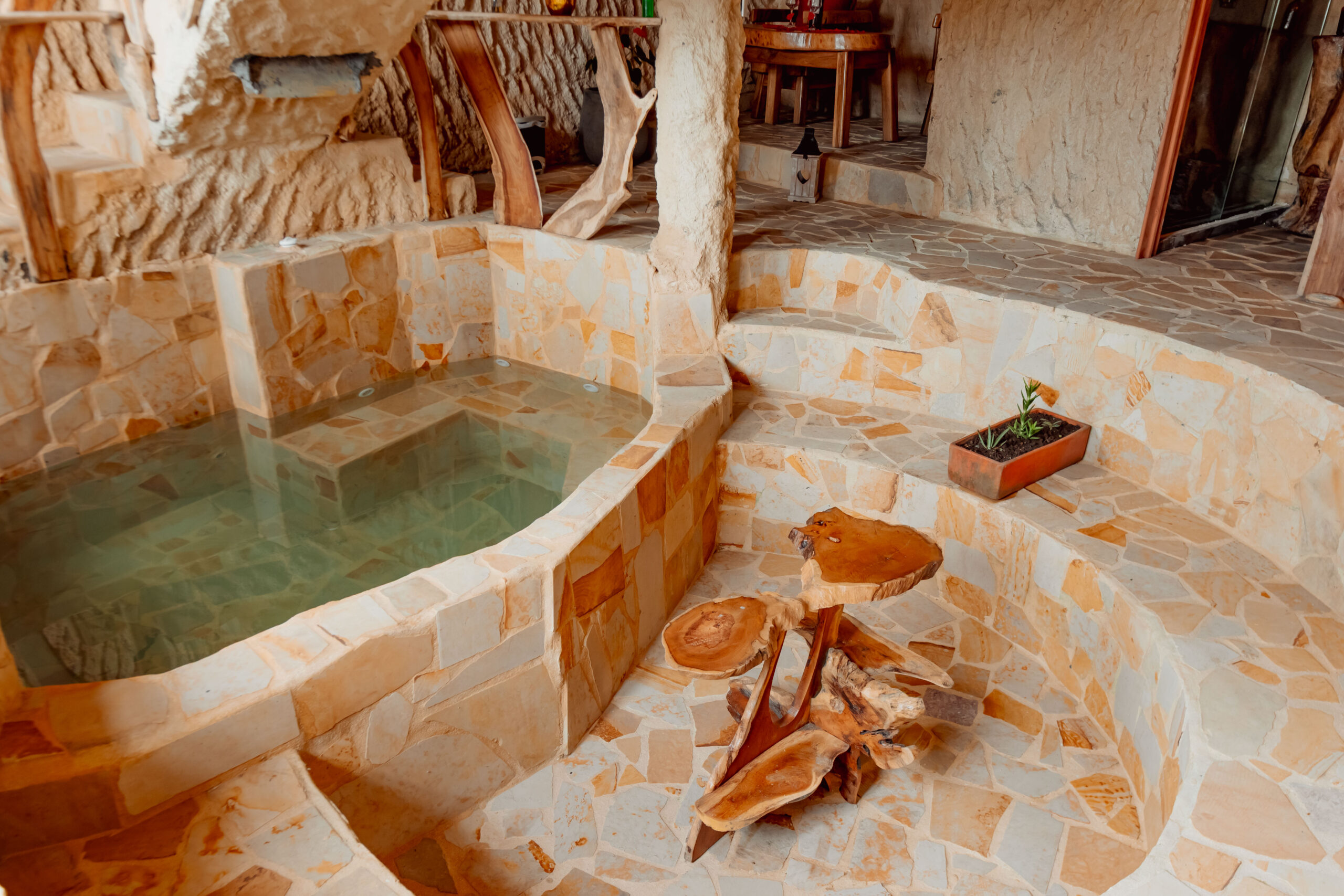 Kuri es la joya: una caverna inspirada en el oro como símbolo de luz, valor y celebración. Ideal para momentos especiales, con una experiencia sensorial elevada y piscina climatizada para descansar sin prisa. Su diseño rinde homenaje a la cultura Quimbaya, convirtiendo cada detalle en una forma de ritual.