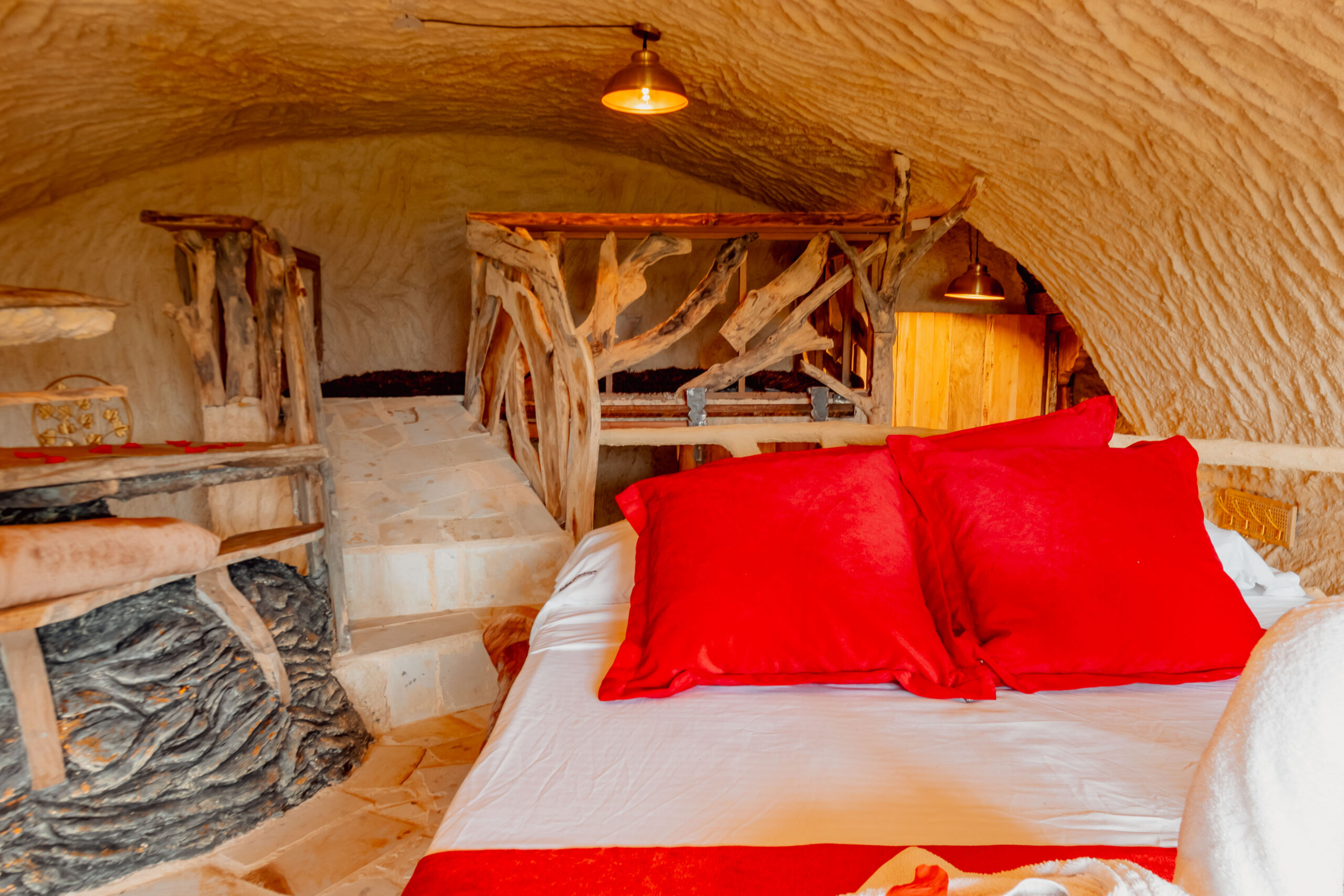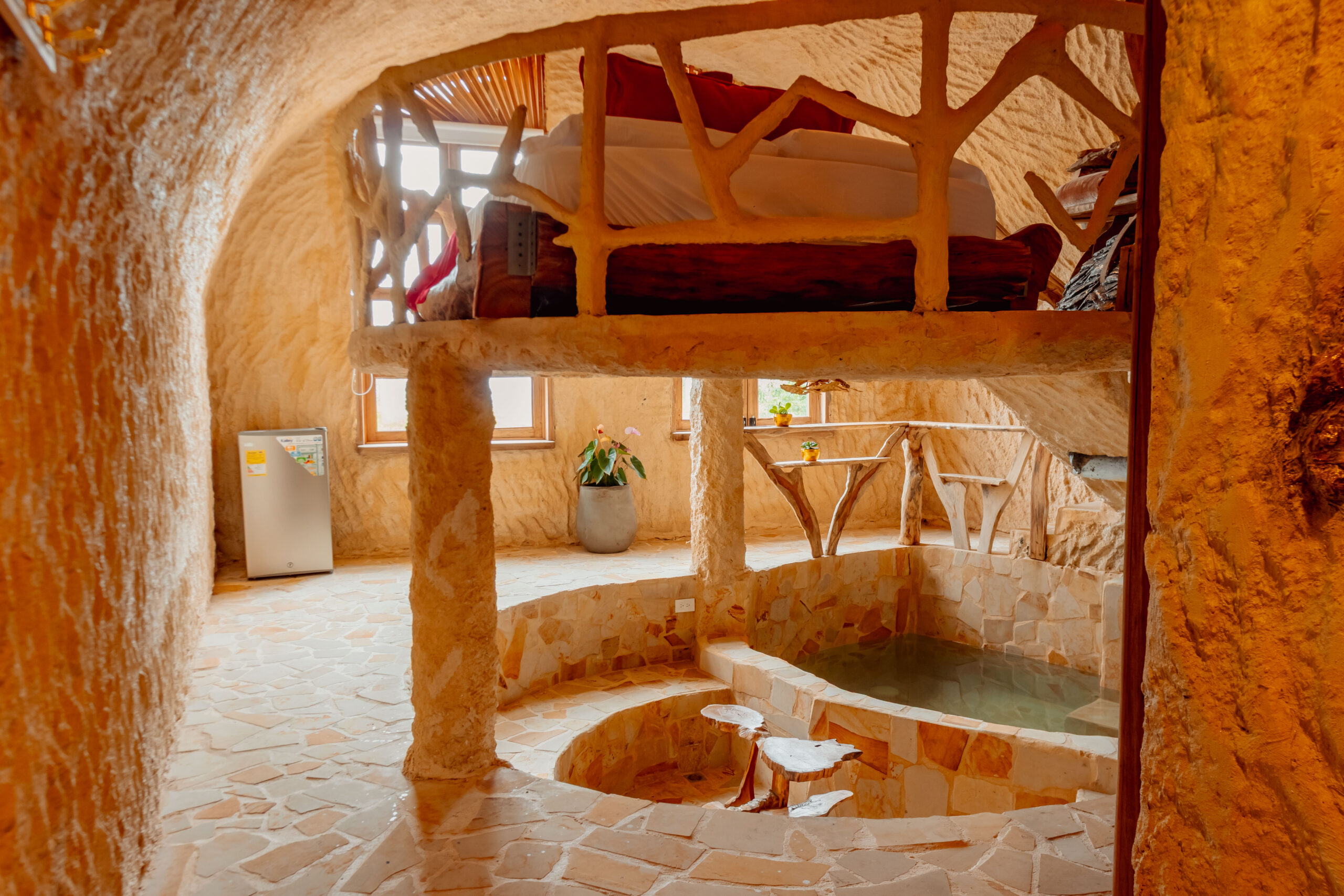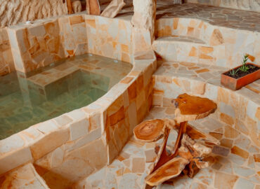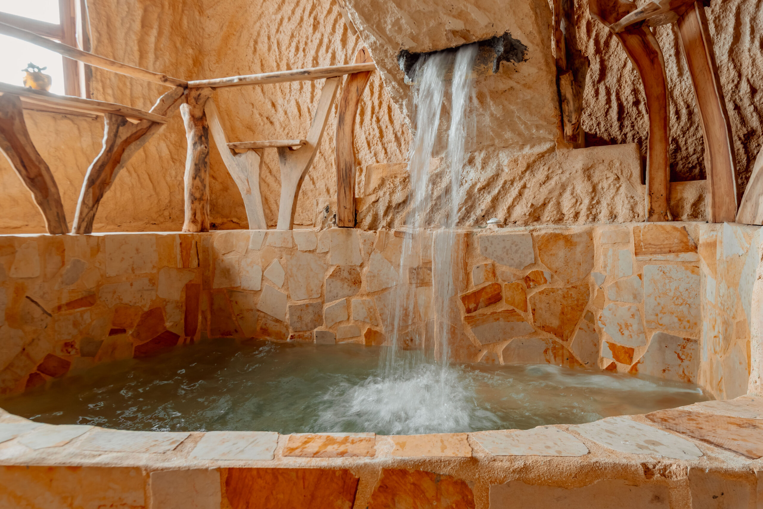 Kuri es la joya: una caverna inspirada en el oro como símbolo de luz, valor y celebración. Ideal para momentos especiales, con una experiencia sensorial elevada y piscina climatizada para descansar sin prisa. Su diseño rinde homenaje a la cultura Quimbaya, convirtiendo cada detalle en una forma de ritual.