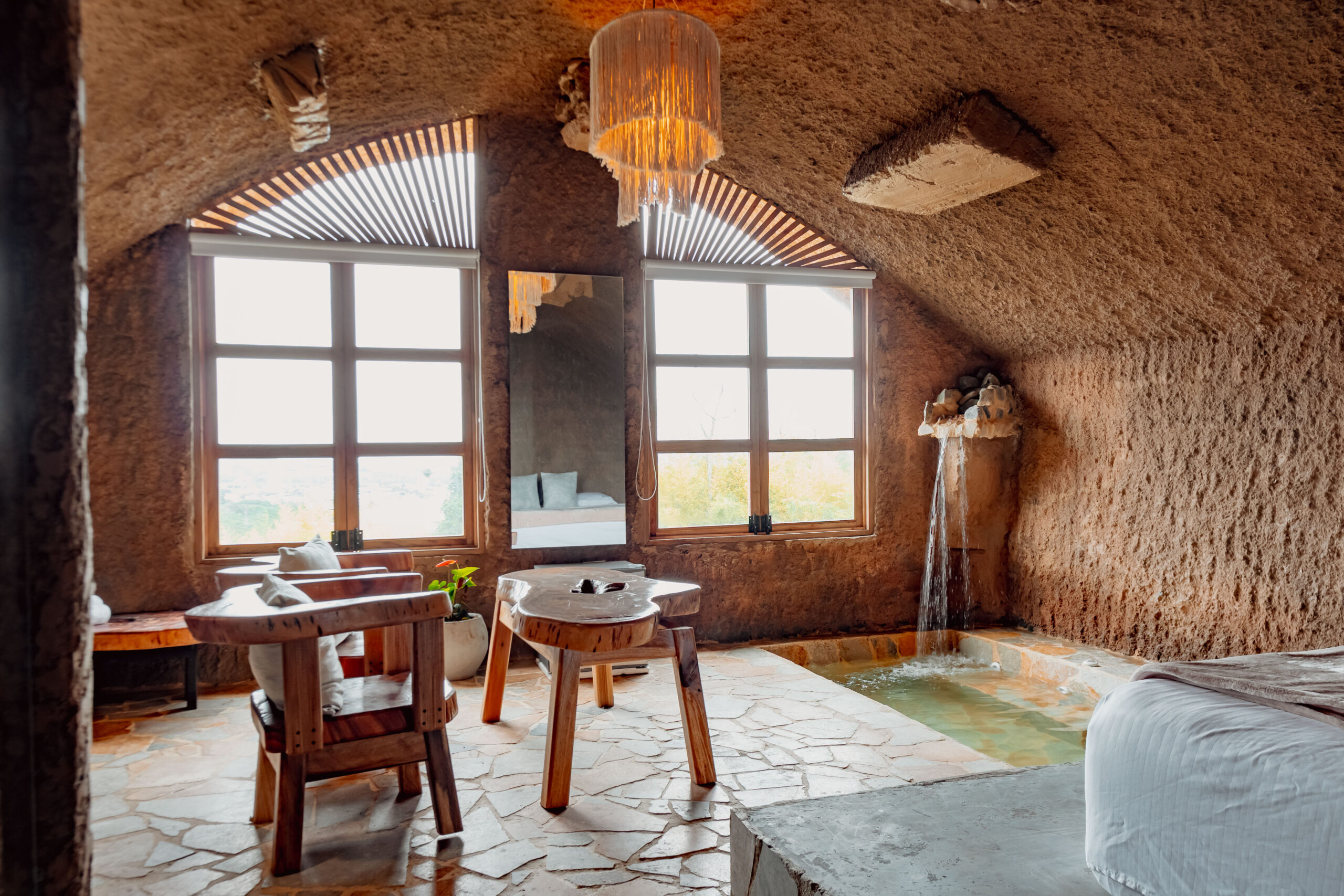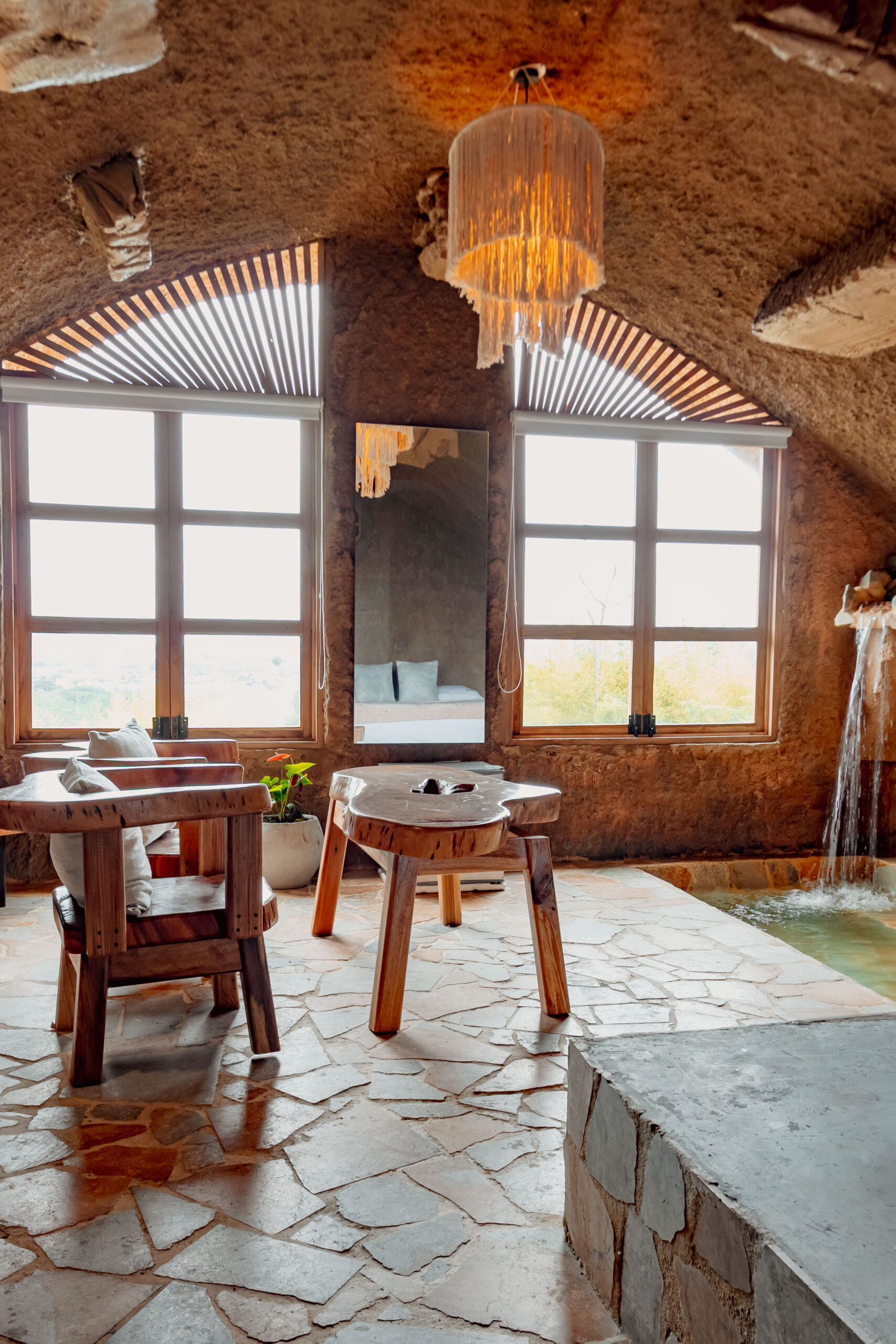 Una caverna íntima y luminosa inspirada en la pureza de la sal: un espacio para soltar, depurar y volver a lo esencial. Su piscina climatizada te envuelve en calma, mientras la arquitectura tipo cueva honra la conexión con la tierra y la estética ancestral Quimbaya.